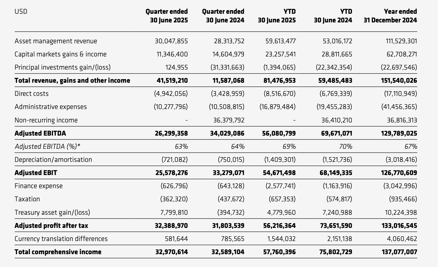 对整个上半年来说,由于 2024 年计入了 FlowBank 破产的亏损以及出售 FTX 债权的收入,故数据有些失真(收入同比的大幅增长也因此出现异常),除去这部分数据来看 CoinShares 今年上半年的表现与去年同期相比变化不大。